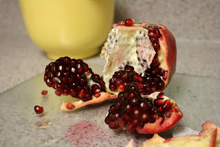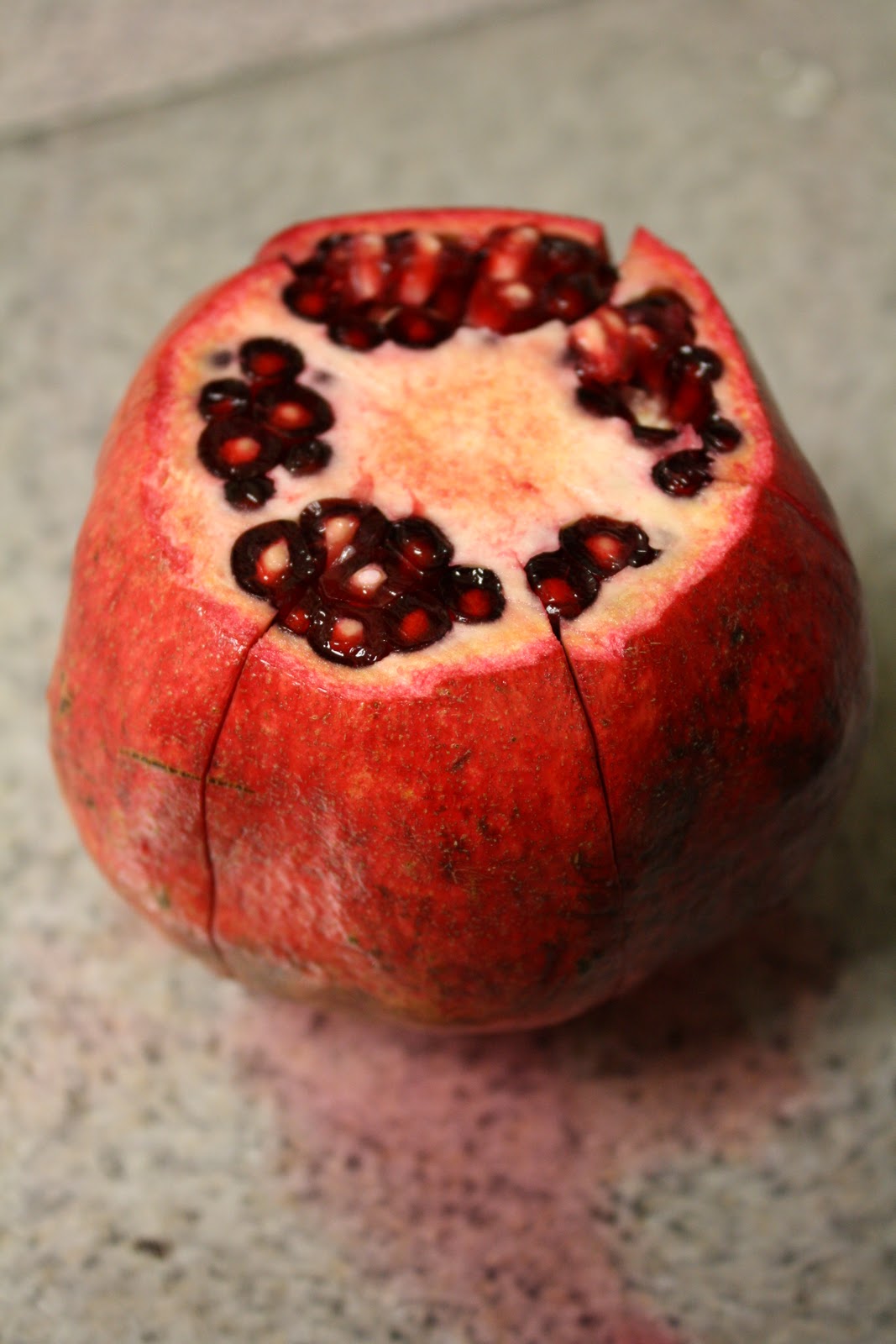 Weeks ago, Julie, at Peanut Butter Fingers, posted about her trip to a Pom Wonderful Factory. Pom Wonderful is one of the leading pomegranate companies that grow, harvest and process pomegranates. Seeing all these bright, tasty looking fruit piqued my interests and inspired me to pick a few up the next time I was at the grocery store. Let me tell you….they are amazing. Biting into the arils (the little covering of the seeds) produces a little pop and then a whole lot of juicy flavor. It is a bit of work to get to the arils, but its well worth it.